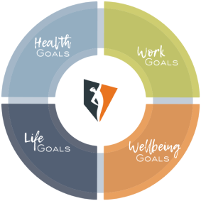 The moving arrows symbolise that our Aboriginal and Torres Strait Islander service acknowledges, respects and provides for the cultural and individual needs of each client, with the focal point representing the overall goal of providing a culturally tailored, respectful and appropriate recovery and return to work service.